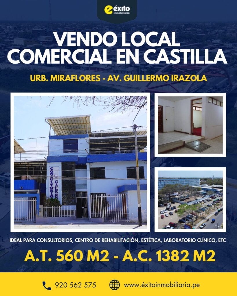 ¡INVERSIÓN ESTRATÉGICA! 🚀 Venta de Local Comercial en la mejor ubicación de Castilla: Urb. Miraflores – Av. Guillermo Irazola.